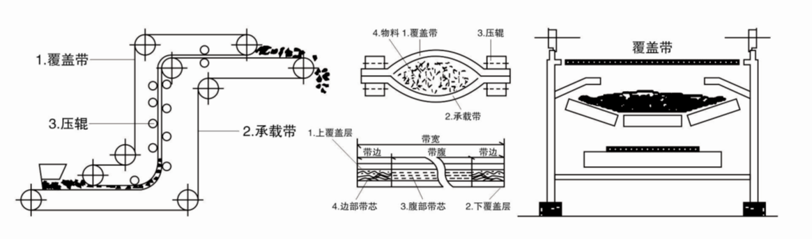 The covering sealed conveyor belt covers the dust, water and wind of the environment for the conveyor system. The skeleton layer is made of special nylon fabric, steel cord layer, etc., which not only has excellent longitudinal elasticity, but also has excellent transverse rigidity, so it is widely used in unloader, recovery device, automatic unloading conveyor and so on.