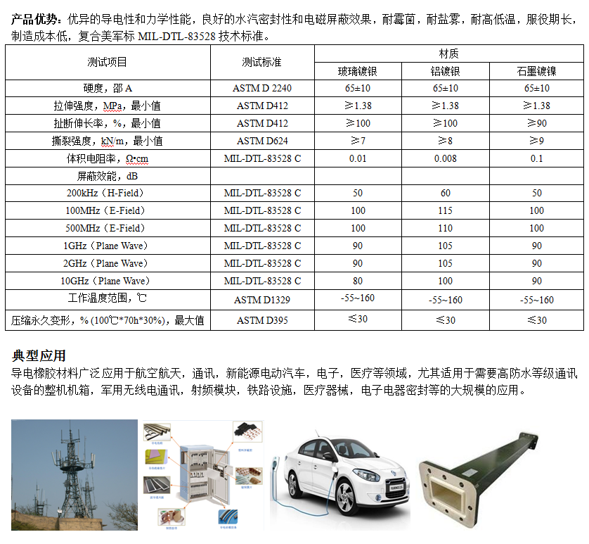 Extruded conductive rubber strip is a kind of new conductive polymer material, which is made by mixing conductive metal powder containing silver in silicone rubber or other rubber by mechanical blending, and by extrusion molding under specific process parameters. It has good electrical conductivity, electromagnetic shielding effect, water vapor sealing, salt spray resistance, mold resistance, high and low temperature resistance, long service life. According to the material can be divided into silver, copper plated silver, aluminum plated silver, glass plated silver, graphite plated nickel, conductive carbon black and so on.